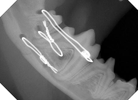 Figure 2. Radiograph of the same dog’s mandible after fixation with transosseous wires.
