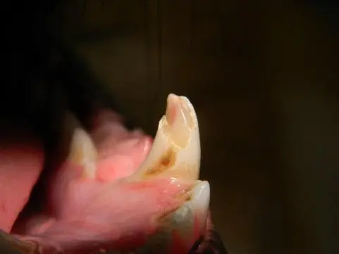 Figure 1. A fractured canine tooth with pulp exposure in a dog.