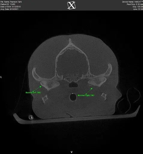 TMJ disease is diagnosed most accurately through imaging. Skull radiographs are beneficial but often are challenging to interpret as they are two-dimensional images. Cone-beam CT imaging provides 3-D evaluation and is invaluable for diagnosing TMJ disorders. This imaging modality is completed under general anesthesia, with imaging results in less than 4 minutes in most patients.